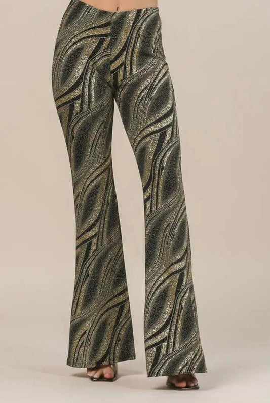 Pants - Beautiful Gold Sparkly Glitter on Black Flare Dress Pants - Sizes Small to Large