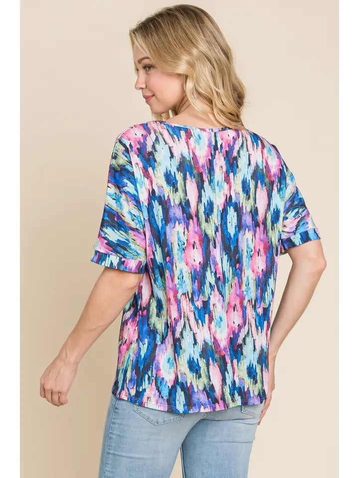 Top NEW ARRIVAL - Vibrant Multi-Color Soft & Stretchy Short Sleeve Top