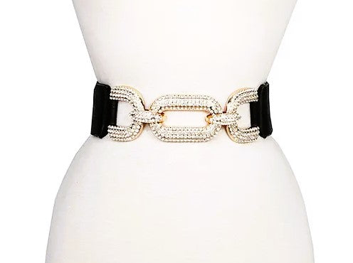 Belt - Gorgeous Large Rhinestone Buckle Stretch Black Belt