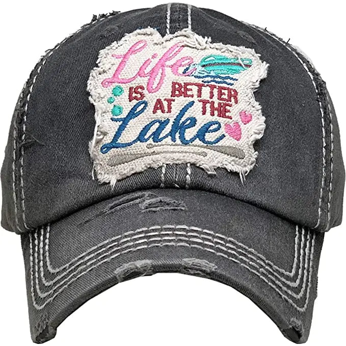 Baseball Cap - Distressed Black "Life Is Better At The Lake"