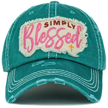 SIMPLY BLESSED Vintage Distressed Turquoise Baseball Cap