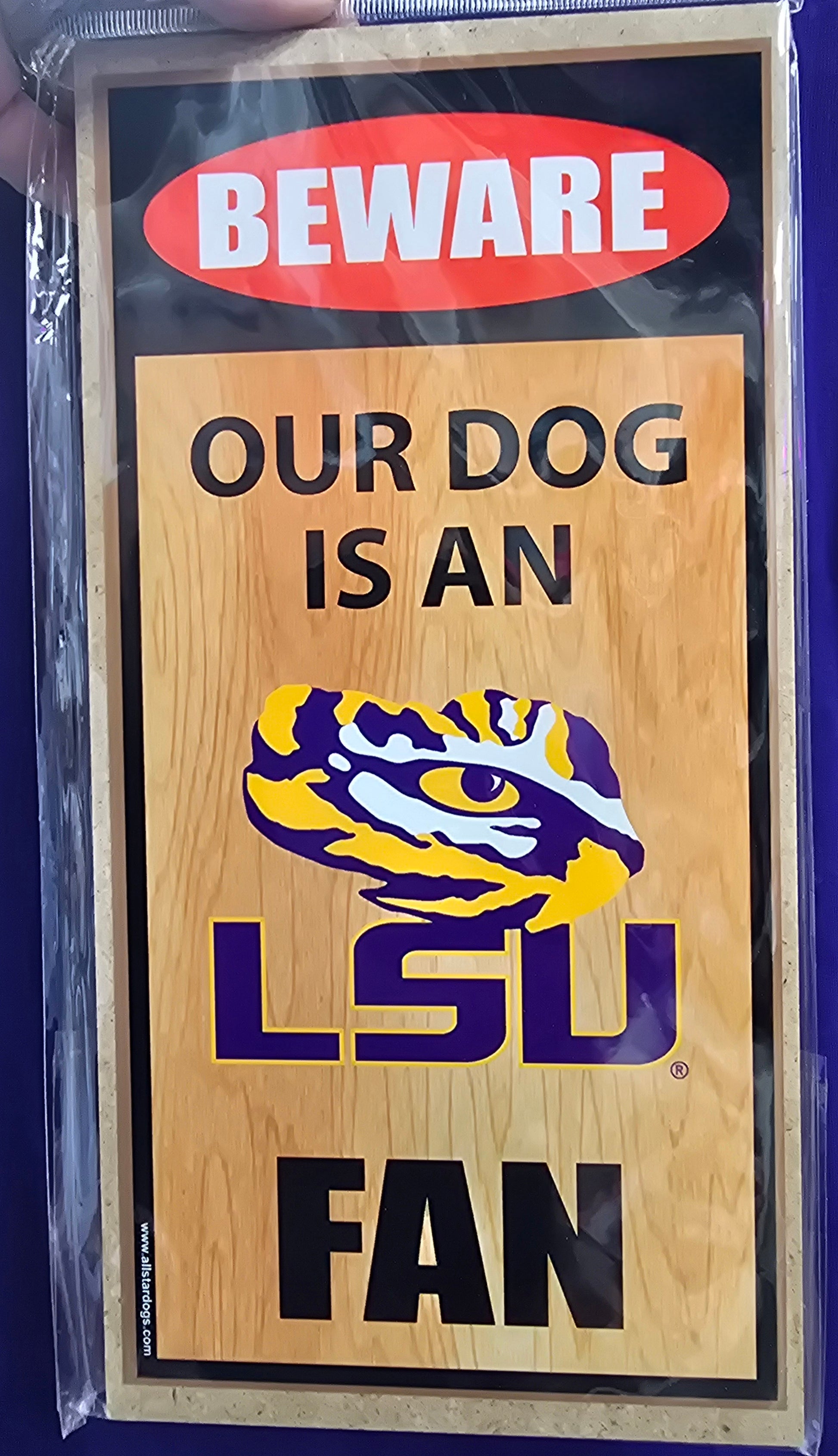 LSU Wooden Sign NEW ARRIVAL - Beware Our Dog Is An LSU Fan Wooden Sign