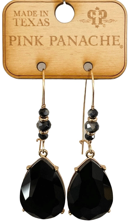 Experience the allure of Pink Panache with these stunning Black Crystal Teardrop Earrings, intricately designed with dazzling crystals on the front ear wire. A true gem of American craftsmanship, each pair is expertly MADE IN THE USA. Look and feel your best with these must-have earrings.