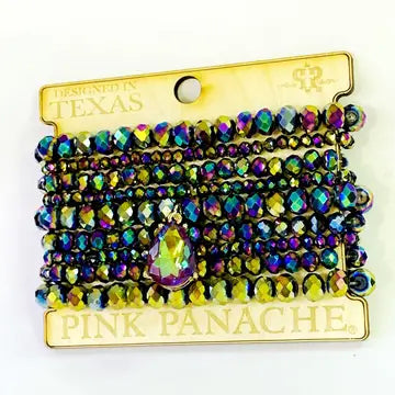 Jewelry Bracelet - Pink Panache Purple/Fuchsia/Gold/Blue Crystal Bracelet 9 Stack Set With Large Blue Austrian Crystal Charm