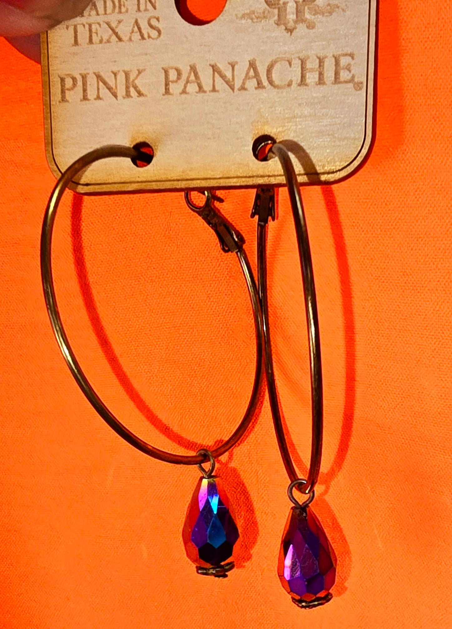Jewelry Earrings - Pink Panache Bronze Hoop Earrings With Multi Color Purple/Gold/Fuchsia/Blue Crystal Drop Charm