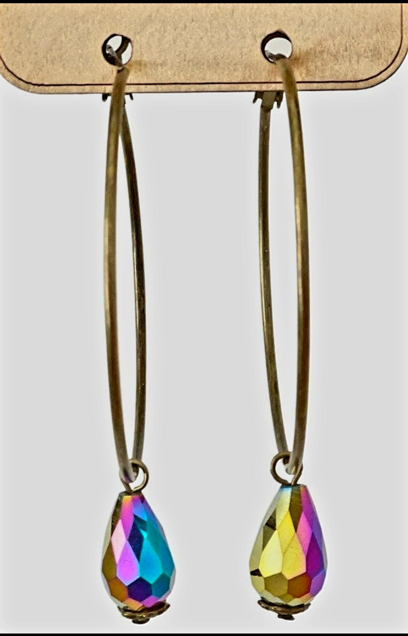 Bronze Hoop Earrings With Multi Color Purple/Gold/Fuchsia/Blue Crystal Drop Charm